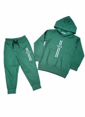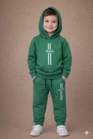 Peace Unisex Kids Winter Set – Green Hoodie Outfit For Boys